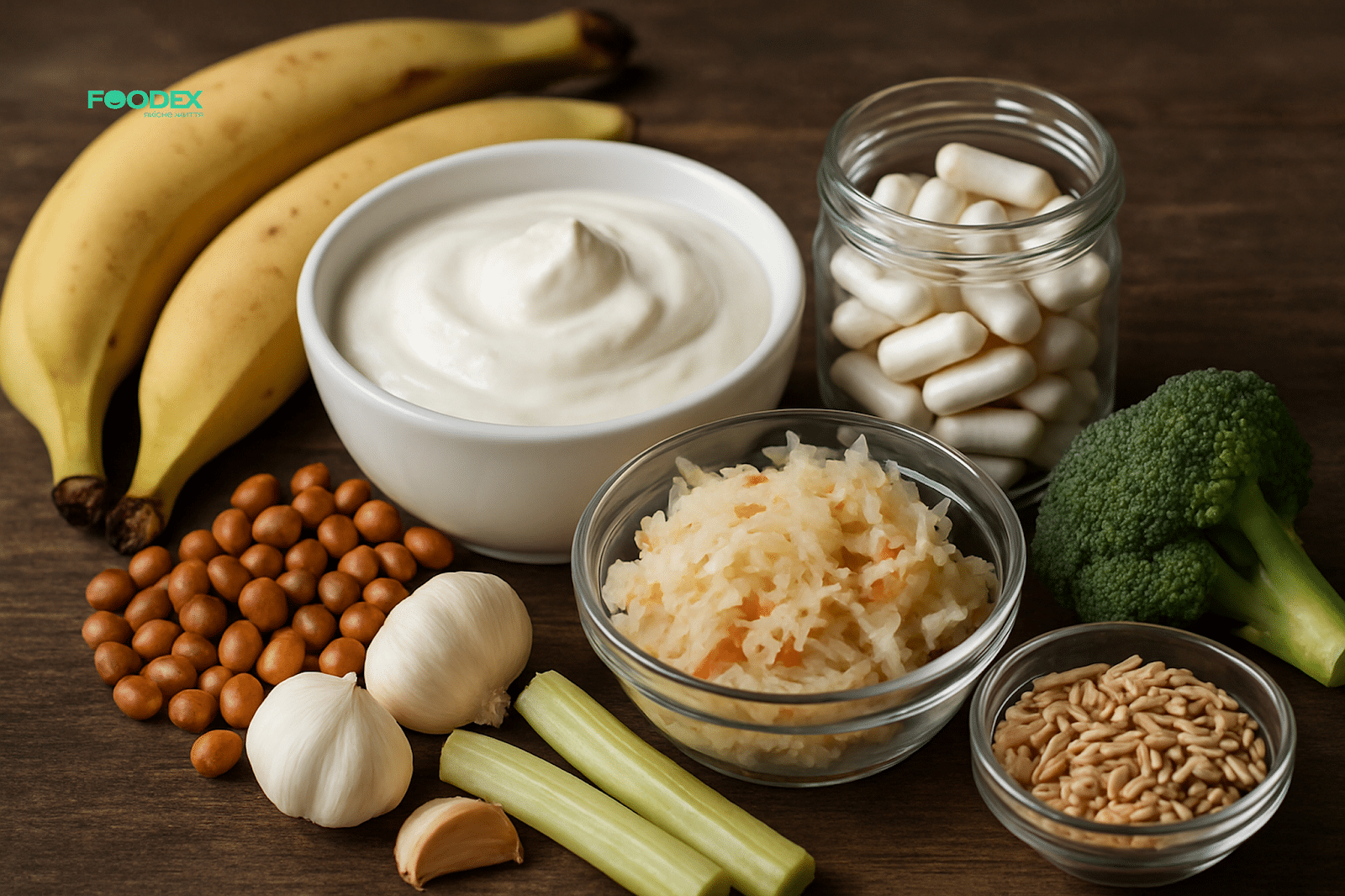 Bổ sung probiotics từ thực phẩm tự nhiên là cách hiệu quả để cân bằng hệ vi sinh đường ruột. Sữa chua, kefir, kim chi hay các loại rau lên